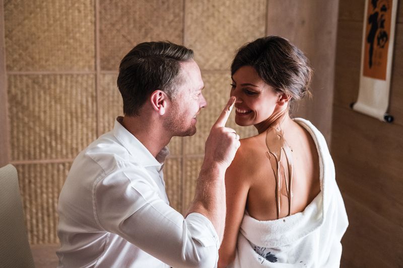 Schoko- und Weintherapie vereint in einem genüsslichen Ritual in der Spa-Suite für zwei. Wer wählt die Schokolade und wer den lokalen „Champagner“? Das Schoko-Erlebnis besteht aus einer angenehmen Gesichts- und Körpermassage mit kosmetischer Schokolade. Sparkling Italy ist eine berauschende Behandlung für Gesicht und Körper mit Produkten auf Basis von Schaumwein.